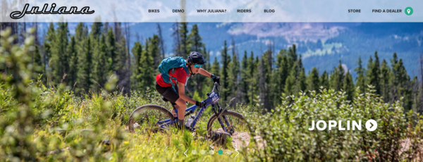 Juliana Bicycle 的網(wǎng)站首圖同樣是將產(chǎn)品置于使用場(chǎng)景中。