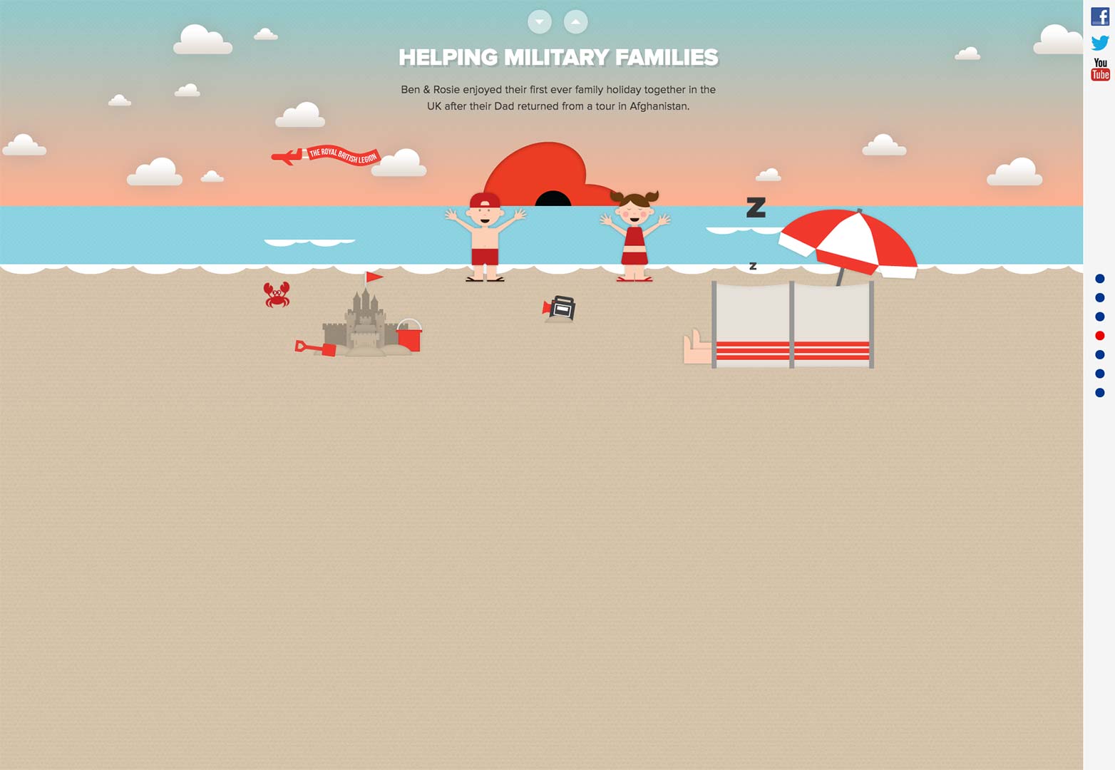 以The Royal British Legion為例,這個網(wǎng)站就是通過視差滾動的方式想你展示了捐助是如何全程使用過來的必要信息。當你向下滾動的時候,這些充滿活力的故事就通過視差特效一一展現(xiàn)在你的眼前,你會看到軍團為退伍老兵所提供的各種各樣有益的服務(wù)。