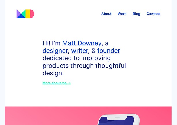 馬特唐尼使用明亮的藍(lán)色和幾乎紫色的底色;十六進(jìn)制#263 d83。