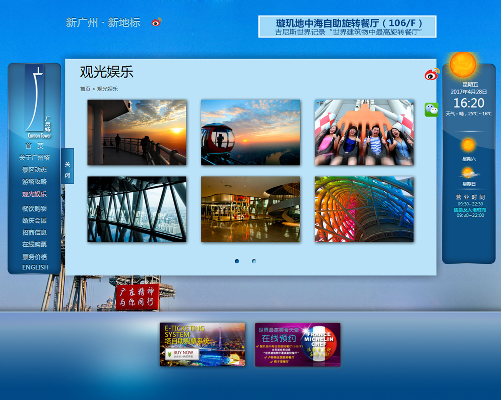 廣州塔是一座集都市觀光、時(shí)尚餐飲、至高游樂、影視娛樂、婚慶會(huì)展、環(huán)??破?、文化教育、購物休閑等多功能于一體的、具有豐富文化內(nèi)涵的大型旅游觀光建筑,成功打造為一個(gè)世界一流水平的旅游景區(qū)。廣州塔采用了當(dāng)代最優(yōu)秀工程設(shè)計(jì)和最新施工技術(shù),以其獨(dú)特的建筑造型與世界新高度,依托其得天獨(dú)厚的旅游資源。