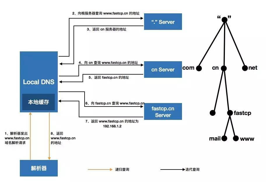 (1)解析器向本地 Local DNS 發(fā)起 www.fastcp.cn 的域名遞歸解析請求;