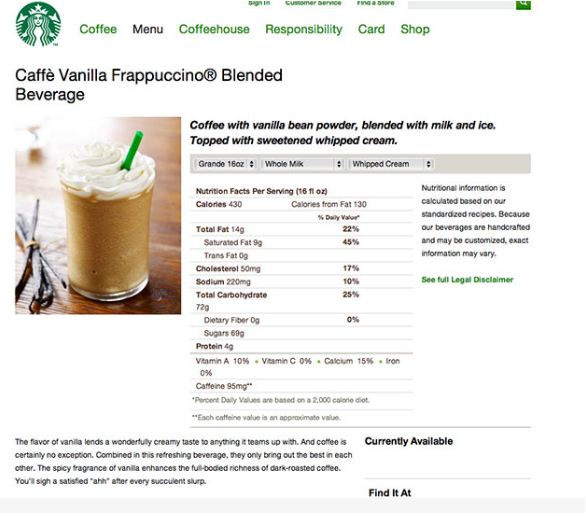 產(chǎn)品詳情頁對于電商網(wǎng)站非常重要,產(chǎn)品信息必須在保證真實(shí)的基礎(chǔ)上,優(yōu)化細(xì)節(jié),盡可能的誘人,這樣才能有效的吸引顧客。比如星巴克的產(chǎn)品頁面,不僅有誘人的實(shí)體展示,有很多不同口味的飲品讓你選擇,這樣讓用戶有很大的選擇空間,用戶自然而然就會高興咯。