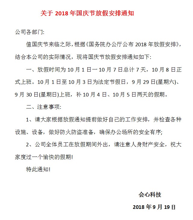 首頁新聞動態(tài)最新簽約2018年國慶節(jié)放假通知