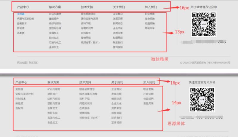 各種字體在網(wǎng)頁設(shè)計使用過程中,不一樣的字體同樣大小字號下,視覺的差異性非常明顯,如下圖對比: