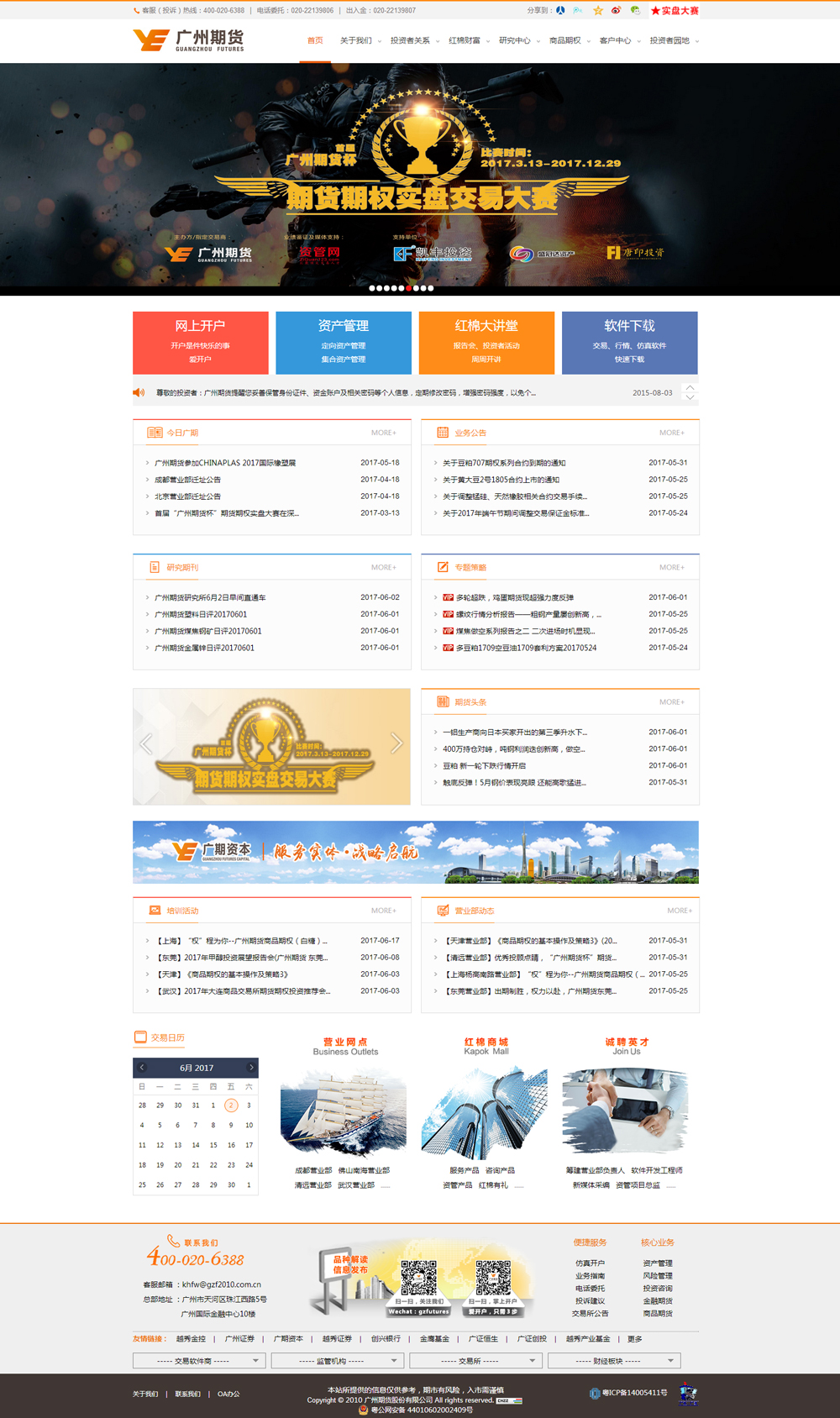 廣州期貨在全國(guó)各主要城市均設(shè)有營(yíng)業(yè)部,基本形成了立足珠三角,輻射全國(guó)的經(jīng)營(yíng)網(wǎng)絡(luò)。