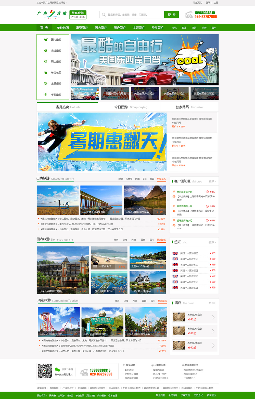 青旅服務(wù)網(wǎng)絡(luò)延伸至全國(guó)各地,廣東省內(nèi)設(shè)置四十多個(gè)分支機(jī)構(gòu),并擁有自己的旅游車隊(duì)。旅游資源進(jìn)行集團(tuán)化采購(gòu),對(duì)客戶進(jìn)行跟蹤服務(wù)。常年經(jīng)營(yíng)有特色的旅游產(chǎn)品,如自駕車旅游、商務(wù)會(huì)展、獎(jiǎng)勵(lì)旅游、紅色旅游、高爾夫休閑游、自行車漫游、星級(jí)郵輪環(huán)球游、夏令營(yíng)活動(dòng)、中小學(xué)校春游秋游和世界各國(guó)青年交流活動(dòng)等,是華南地區(qū)最大的入境自駕車旅游組團(tuán)社,歐洲游專線和巴厘島游專線重要的批發(fā)商,是世界遺產(chǎn)地廣東丹霞山、開平碉樓和湖南莨山,廣州塔、長(zhǎng)隆歡樂(lè)世界等著名景區(qū)的最佳合作伙伴。