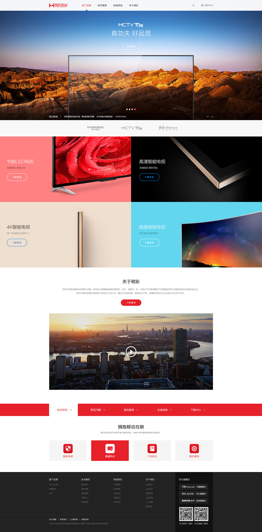 明彩創(chuàng)想公司生產(chǎn)的產(chǎn)品全線通過國家3C強制性認證,共獲得30張獨立3C證書,其國內(nèi)市場“MCTV王牌 現(xiàn)代科技”品牌已發(fā)展500多家區(qū)域代理商、零售網(wǎng)點近2000家,售后服務(wù)網(wǎng)點達80000多個,并出口到朝鮮、俄羅斯、東南亞、非洲、歐美等國家和地區(qū)。