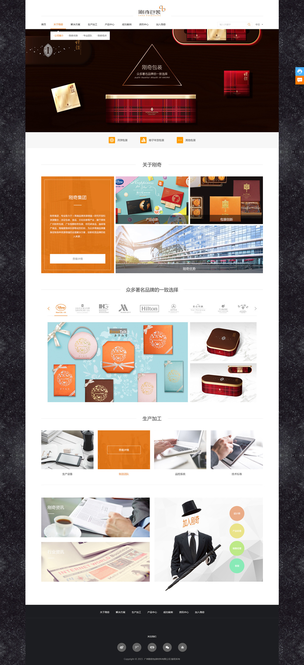 剛奇集團(tuán),專業(yè)致力于<高端品牌資源增值>研究開發(fā)和資源整合,涉足包裝、食品、文化創(chuàng)意等產(chǎn)業(yè),旗下?lián)碛袕V州剛奇包裝、廣東恒輝剛奇包裝、佰司卓食品、逸森海產(chǎn)食品、??Ф燃倬銟凡康瘸蓡T機(jī)構(gòu),為眾多高端品牌量身定制各種資源增值的全面解決方案,創(chuàng)新拓寬品牌的收入來源;集團(tuán)旗下剛奇包裝,是【包裝及產(chǎn)品創(chuàng)新】全面解決方案提供商,從事高端品牌的月餅、粽子、年貨等季節(jié)性商品和禮品領(lǐng)域,為客戶提供涵蓋市場調(diào)研、品牌升級、產(chǎn)品規(guī)劃、研發(fā)設(shè)計(jì)、包裝制造、營銷推廣的整體服務(wù),業(yè)已成為大中華地區(qū)<高端酒店自有品牌商品綜合解決方案>領(lǐng)先提供商,長期服務(wù)于香格里拉、萬豪、洲際、希爾頓、美心、廣州酒家等著名酒店餐飲集團(tuán),以及迪士尼、星巴克等世界著名品牌,專業(yè)服務(wù)備受行業(yè)客戶美譽(yù)。